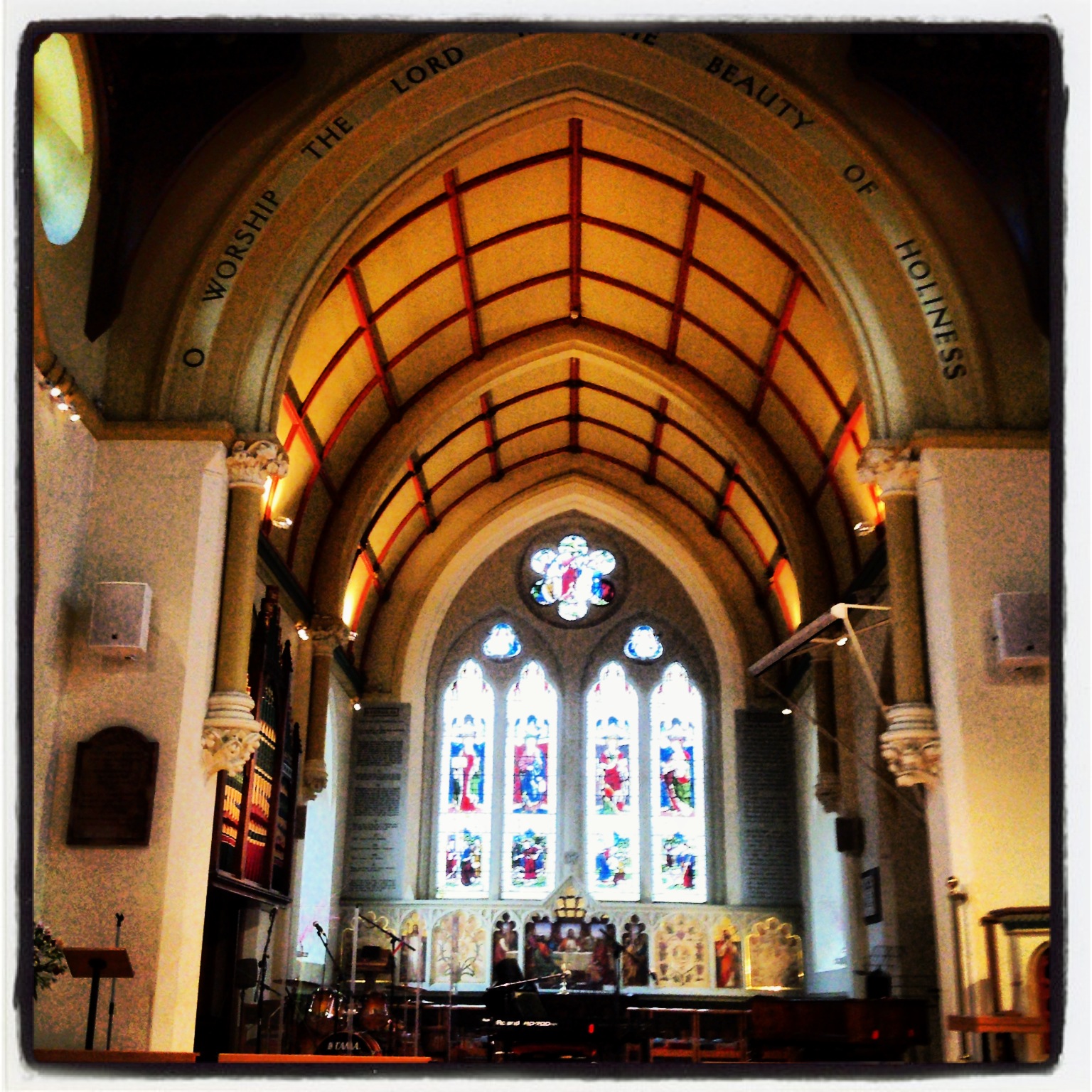 As I consider these words again hanging above where we sit in church, I see more and more this beautiful invitation to delve deeper into a worshipful exploration of what it means to pursue holiness in our lives and to walk across the bridge from our (simultaneously) complete and progressing holiness, in Christ, to the state of awe-struck wonder in His presence so all we can hope to articulate is a heart-felt ‘O’. O! Where words fail us. O! Where our points of previous reference in Him are undone. O! Where our hearts burn to know this holy God-Man, Jesus, in the way where every unholiness in us is thwarted.